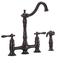 Buyer guide Pegasus 67136-2016 Lyndhurst Series Two-Handle Kitchen Faucet, Oil Rubbed Bronze IPS inlets2.5 in Four hole installation0.5 in maximum deck thicknessLever handlesMatching spraySpout height: 13.38 in.Aerator clearance: 10.75 in.Spout reach: 9.06 in.Weight: 6.4 lbs. 1/2-Inch IPS inlets